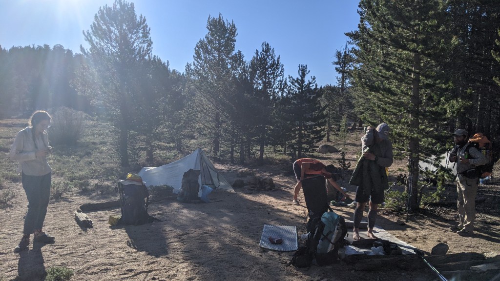 In the morning we sat around and discussed a plan for summiting Mt Whitney, a 16 mile detour that most PCT hikers tackle. Pez and Wiggles wanted to see sunrise from the summit, meaning they’d need to camp as close as they could. It would take them two days to get that close to the mountain while still getting enough sleep to summit that early, leaving them with two very big mileage hiking days following their summit to avoid running out of food. Baby Bigfoot, Zod, and myself decided that a daytime summit would be fine for us, so we planned to getting close to the mountain that morning and summiting the next day. Zod recommend a campsite that he liked, Rock Creek, as our destination for that night. He proposed that we all camp there and that the daytime summit crew head up the next day while the sunrise group go up the following morning. We agreed and headed out for the day.