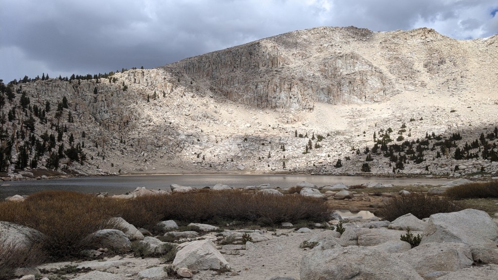 I woke up and took my time getting ready. My bear can was frozen shut so it took some time for it to thaw. Fortunately I only had 8 miles to go to Onion Valley Campground, where I’d be exciting to Bishop to resupply and take a few days off. These 8 miles aren’t part of the PCT, but almost every hiker does them because the trail is pretty and the food carries are already long.