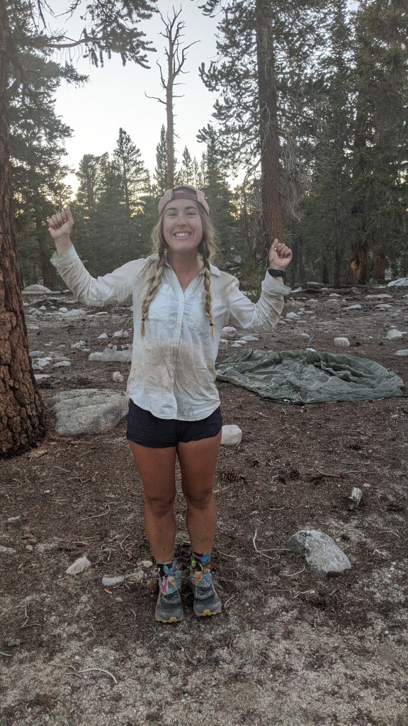 We crossed the border into Sequoia National Park and celebrated. We were finally in the high Sierra! We stopped for dinner at Rock Creek before finishing the last five miles of the day. I was shocked at how low the water level was. Zod had warned that this crossing was waist high in 2017, and would likely still be shin high now, but when we got there it was a pretty easy rock hop across. My feet even stayed dry. It really was unbelievable how little water there was. After lunch Baby Bigfoot and I powered through the last five miles and got to camp by 8. I was feeling proud of myself. I’d covered 50 miles in two days in the Sierra. I felt strong and capable, and went to bed excited to tackle Mt. Whitney the next morning. Baby Bigfoot and I were proud of ourselves for making our own decisions.