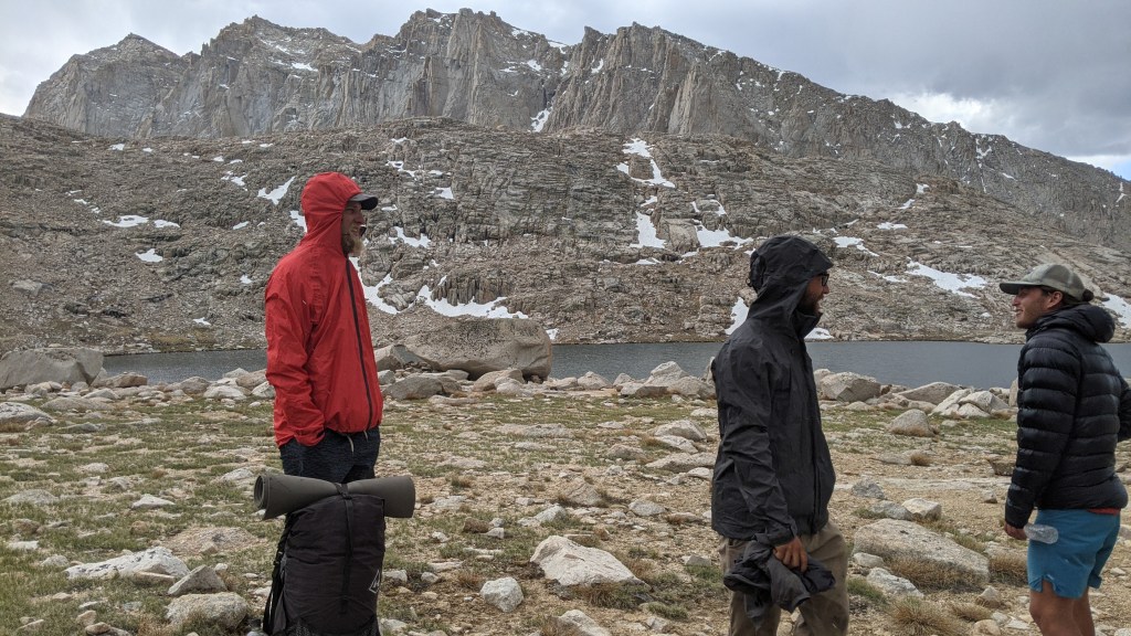 Pez, Baby Bigfoot, and Wiggles were already at the lake when I got there. As I studied my map while I ate lunch I started to get concerned about our summit plan. The Rock Creek campsite was 15 miles from the summit. I’d remembered rangers telling me that I should try to be off of the summit by noon due to thunderstorm risk. Even after hiking 750 miles I didn’t think I could manage 15 miles up Mt. Whitney before noon, so I asked Baby Bigfoot if she wanted to abandon Zod’s plan and hike another 5 miles that evening to get closer to the summit. She agreed, so we cut out lunch break short because we had a lot more hiking to do that day.