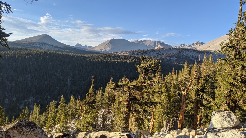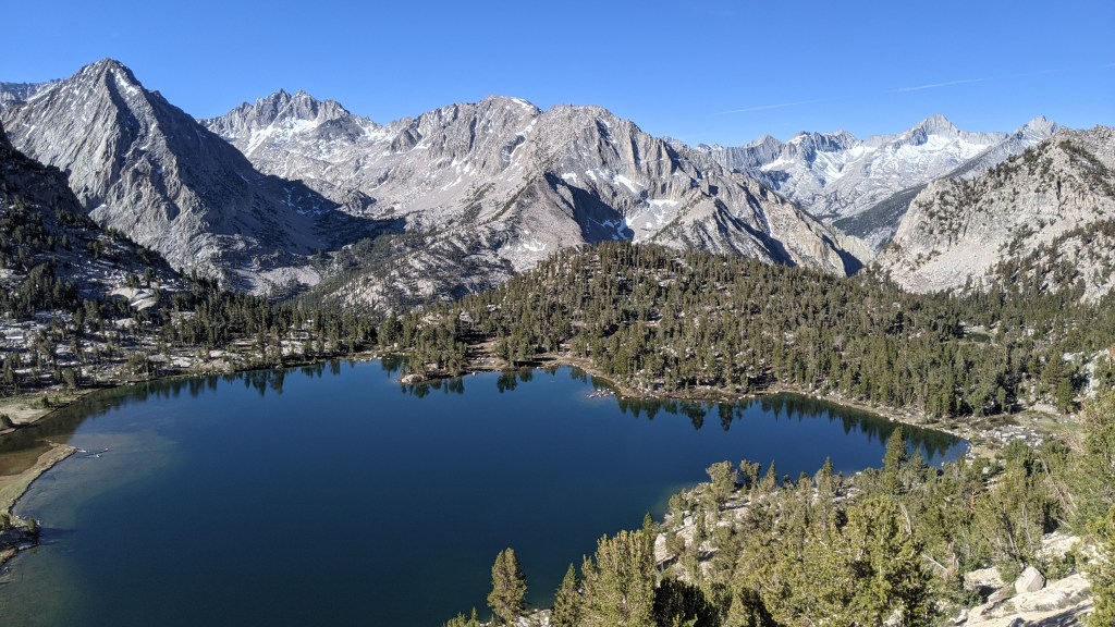 The scenery was unbelievable as the trail climbed. The weather was perfect and as I sat to take in the view it felt like the most perfect day of hiking I’d ever had. The morning was quiet, with no sounds except the gentle roar of the waterfalls in the valley. Again, I felt nothing but gratitude to have been able to be on the trail. I got to the top of Kearsarge Pass around 9 and then headed the five miles down, passing many hikers on the way.