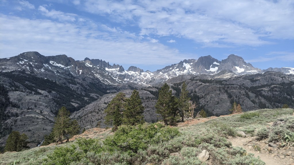 As I got to the top of the pass, which is the southern boundary of Yosemite National Park, my hopes of a mosquito free lunch break were dashed. There was no wind and small ponds at the pass that provided breeding grounds, so they were still swarming hikers. I ate a snack, sneaking the food under my bug head netting into my mouth before heading down the pass.