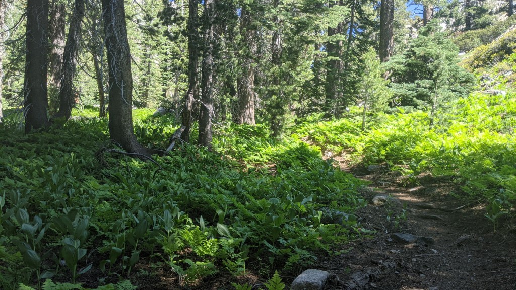 It had been pretty cold, but I was still shocked to see that the hail from the night before had melted so little that it looked like fresh snow on the ground. It was not something that I had seen before. Leave it to the Sierra to give us some crazy weather as a sendoff! I headed off in good weather and good spirits, ready for the day ahead.
