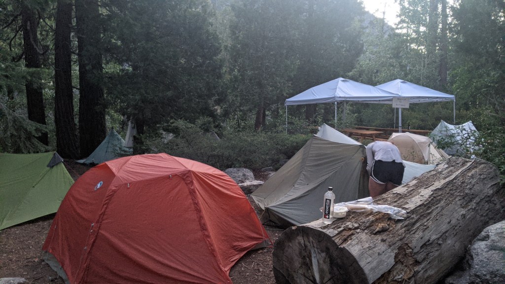 It was a Friday afternoon and Kennedy Meadows North was an absolute madhouse. The place was packed. Typically they offer a “PCT special” which includes a bed in the bunkhouse, however the bunkhouse was full, so instead they offered us a reduced rate to camp in a tiny “PCT only” area on the property. We accepted because we didn’t have much of a choice, but I felt very unsettled and stressed by the chaos as I worked to get my laundry, shower, and resupply in. The pack station had wifi, but there were so many people that it was completely non-functional. I’d hoped to be able to video call with my family at the annual family reunion, but I couldn’t even get a message out. Later in the evening, Joe found me and offered to buy me dinner, but I turned him down because a man with a cabin rental was hosting a cookout for PCT hikers.