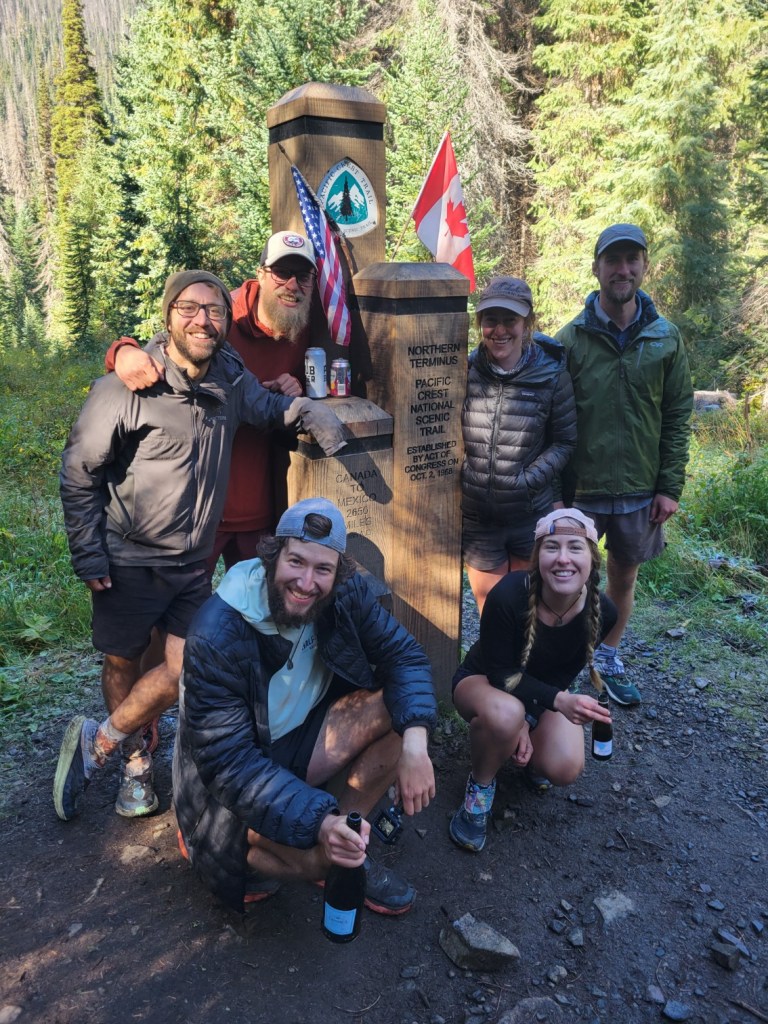 The morning didn’t really warm up and I continued to hike in my layers. A mile from the terminus I found the rest of the group, who had stopped to wait for me. Pez and Wiggles opened beers for the last mile, and Keebler and I tried to remove layers to look a little less dorky. I led as we hiked the last mile together. It was a surreal feeling as we covered the last few steps of a 2,650 mile journey. I never thought I’d actually make it when I started from the Southern terminus five months and a few days earlier. But here I was about to reach the Northern border.