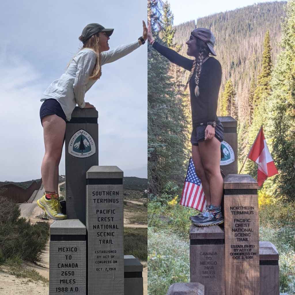 Everyone had their own way of celebrating. Posideon flew a drone he’d brought the whole way. Wiggles gave a speech on the monument and shotgunned a beer. Pez wanted themed pictures with everyone. Half Moon popped a full sized bottle of champagne he’d carried since Steven’s Pass. I sipped on the mini bottle I’d mailed to myself in Stehekin. A young man named Captain Fantastic arrived as we were celebrating and asked us to help him spread his father’s ashes, which he’d carried with him since Mexico. It was a special moment, and as more hikers arrived behind us reactions ranged from laughter, to tears, to disbelief.