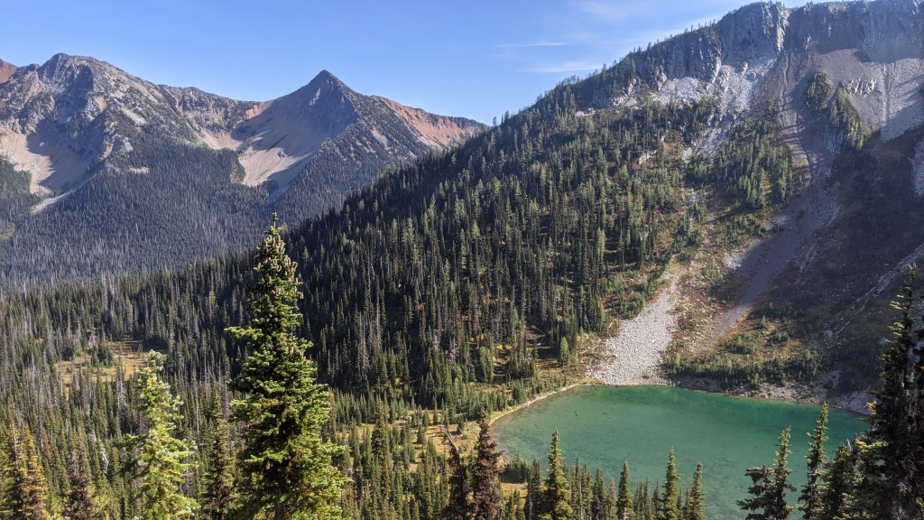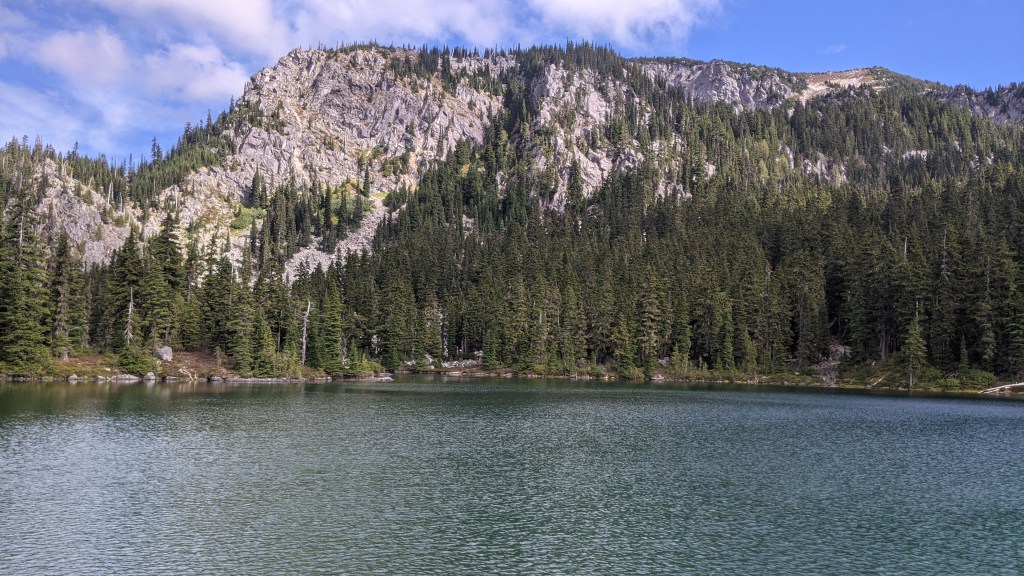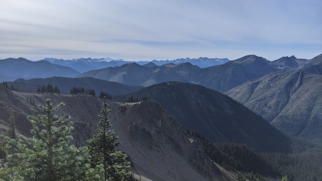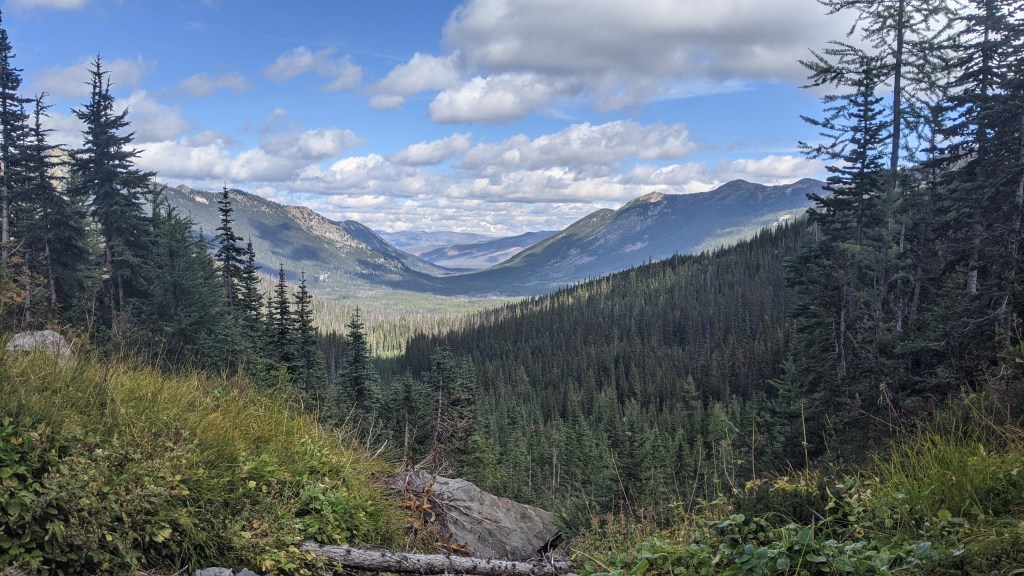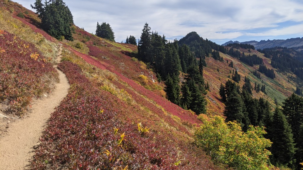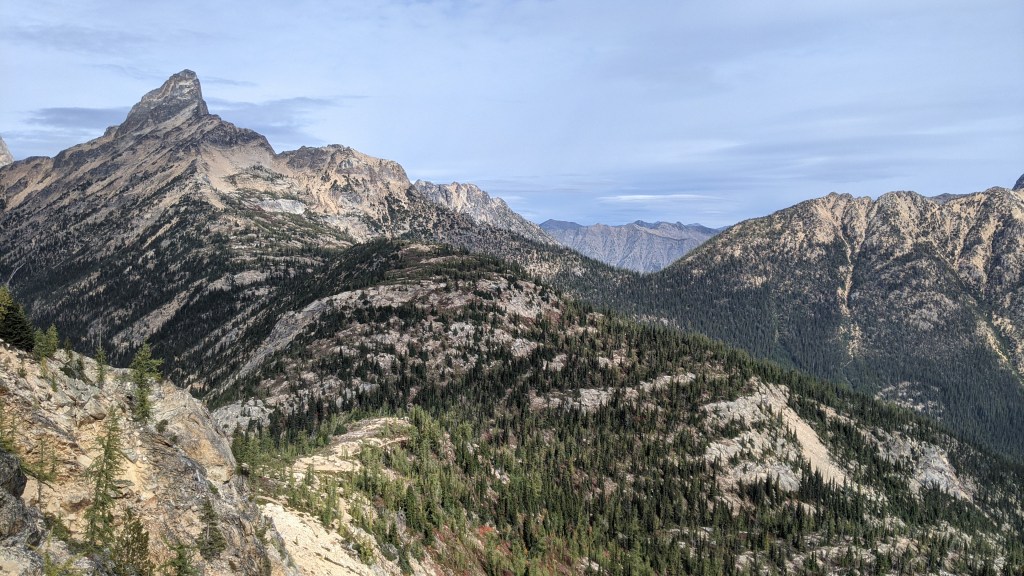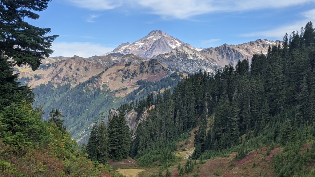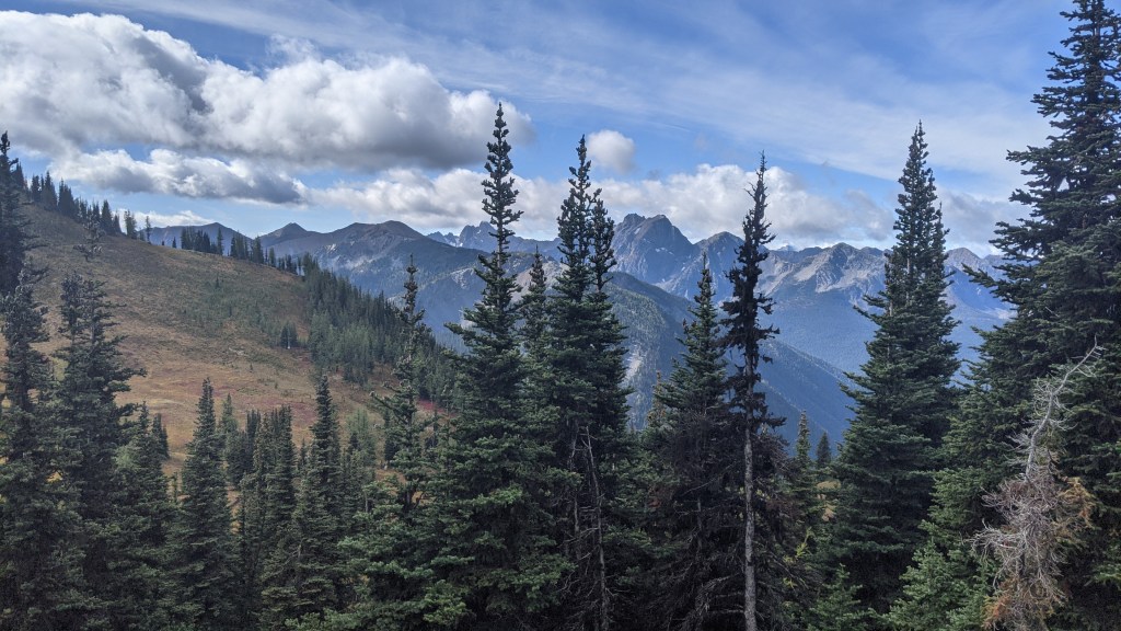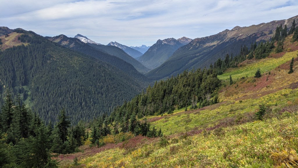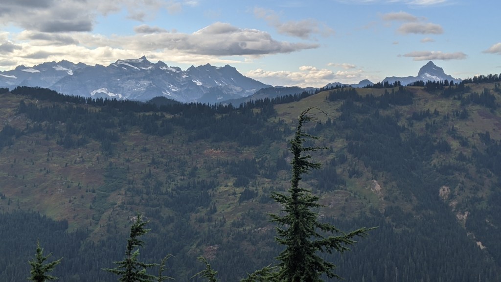 The views were beautiful, but the trail was challenging. Fallen trees everywhere meant that I was constantly climbing over, then under, then over logs on trail. Sometimes if the trees were particularly large I was forced to go around, trying to find purchase on loose soil on the slope of a mountain.