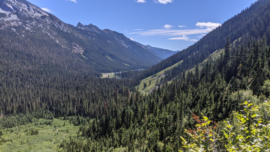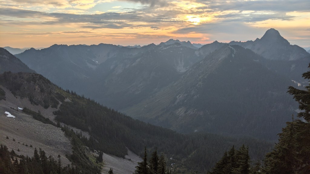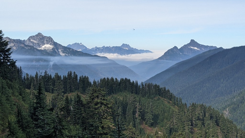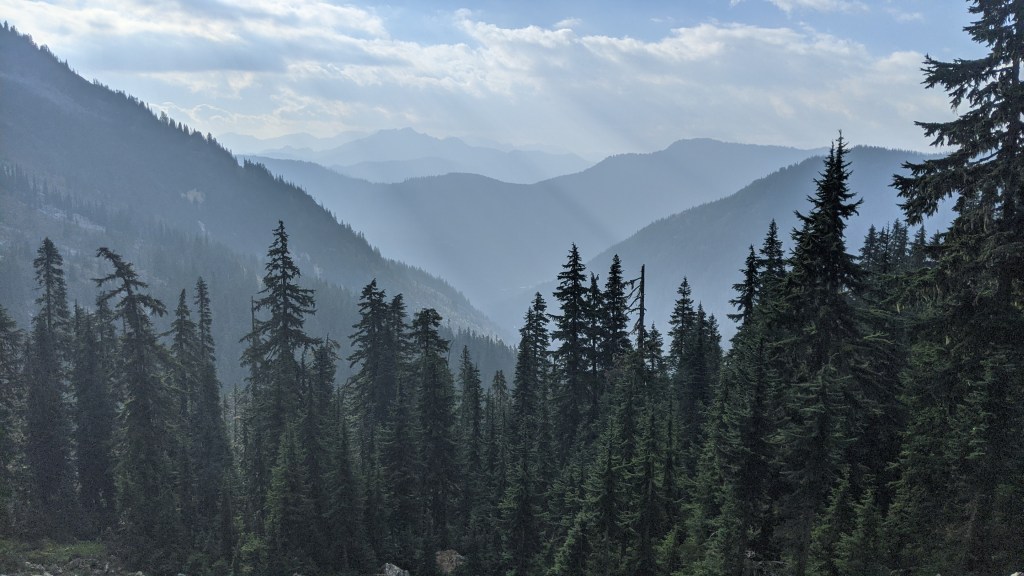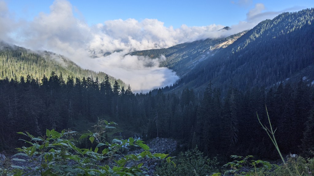 The next morning a couple gave me extra snacks that they wouldn’t need as they were hiking out that day. I was super grateful, as I am always in need of snacks. I woke up to dense fog, but it quickly started to clear as I headed towards Stevens Pass, my destination for the day.
