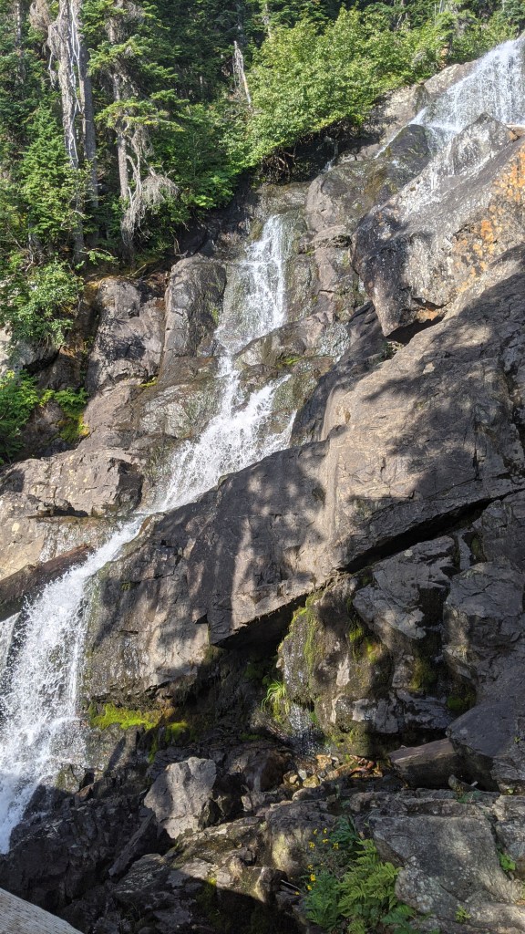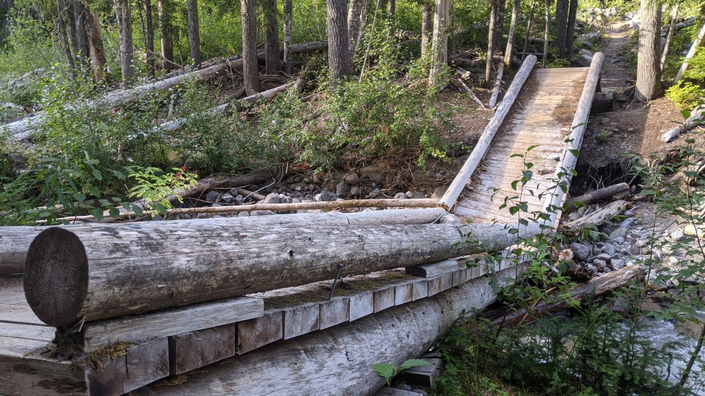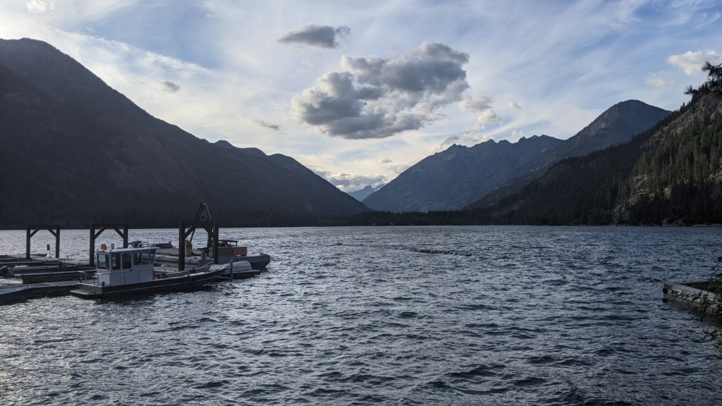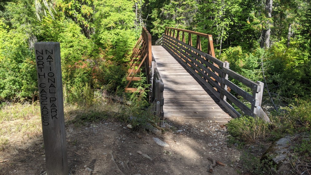 The next morning I got up early. I took a quick detour to a waterfall that some hikers claimed was the best on trail. I don’t think I would call it the best, but it was a nice snack spot. The trail headed briefly into North Cascades National Park before heading to the High Bridge trailhead, where Half Moon was waiting. We waited together for a shuttle into the town of Stehekin.
