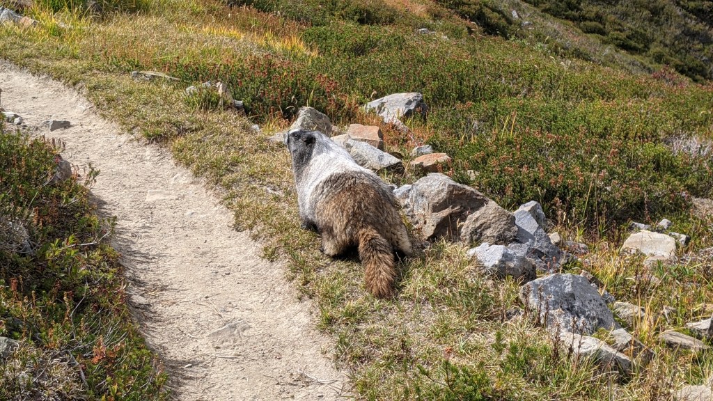 I passed numerous marmots, all of which were about the size of beavers. Marmots also scream to communicate, and their screams echo across the mountains and sound exactly like rescue whistles. Everytime we heard one we made sure to listen for a pattern in case it wasn’t a marmot and someone actually needed help.