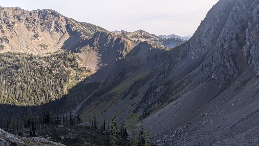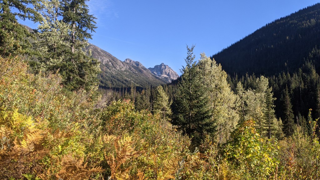 We woke up early to more freezing temperatures. At least this time my shoes had been dry the night before, so while they were frost covered they were not frozen solid. We packed up our stuff but left it secured at the campsite. We’d be coming back out the same way, so we’d pick up our bulkier gear that evening before continuing back to Hart’s Pass. We set off in the early morning, eager to get to the terminus.