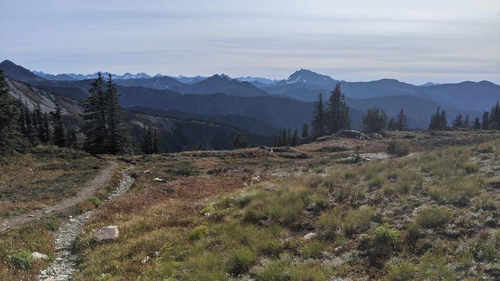 I took a break to send a message to my parents to coordinate pick up at Hart’s Pass. One of my messages wasn’t sending, but I was anxious to get going, so I strapped my GPS messenger to my pack and hiked on. After a few minutes I stopped to check if the message had sent. When I took off my pack, the GPS messenger was gone. It must have fallen off my pack. I immediately put my pack down and ran, retracing my steps and scanning the ground for the device. I had only gone less than half a mile, but I ran all the way back to where I had taken it out and there was no sign of it. I had passed exactly two southbound hikers in the time since I’d last used it. I didn’t know either of them, but one of them must have picked it up and was taking it in the opposite direction. I walked back towards my bag and tried to decide what to do.